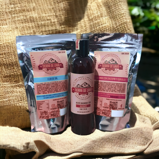PAQUETE - ACEITE AHUMADO + FLOR DE SAL + SAL INFUSIONADA